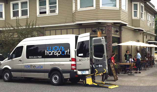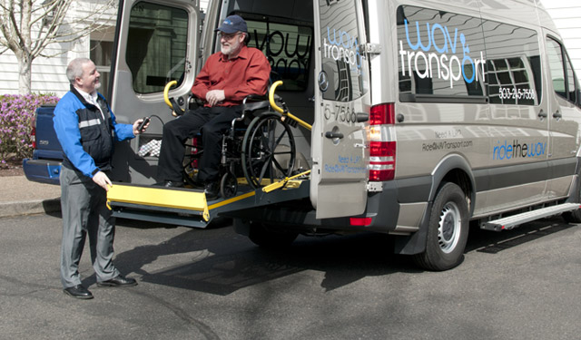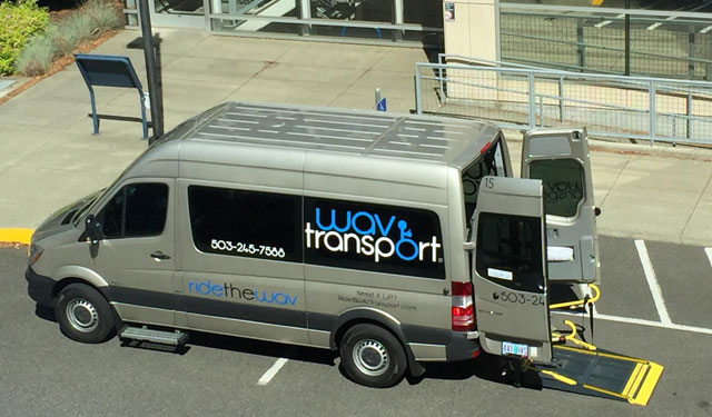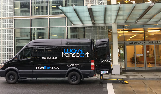 All WAV vehicles are equipped with rear lifts that can accommodate any ADA compliant mobility device. We provide transportation throughout the Portland Metro Area. Currently operating in the state of Oregon only.