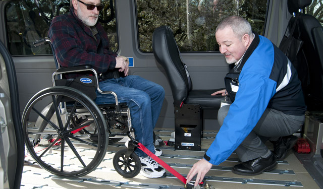 WAV Transport offers high quality service and the best vehicles on the road. Our Mercedes Sprinter Vans are equipped so that you roll on, enjoy a great ride, and roll off.